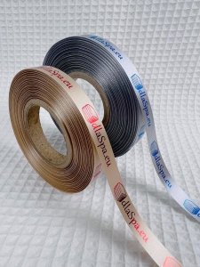 Wstążka satynowa 20 mm kolorowa z logo w kolorze metalicznym - 100 metrów